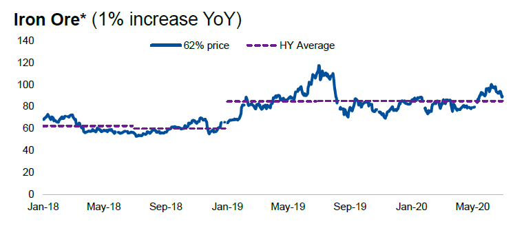 The price chart of the iron ore price shows the price trend over the last 2 years. This shows a distinct recovery in the prices from the lows seen 2018.